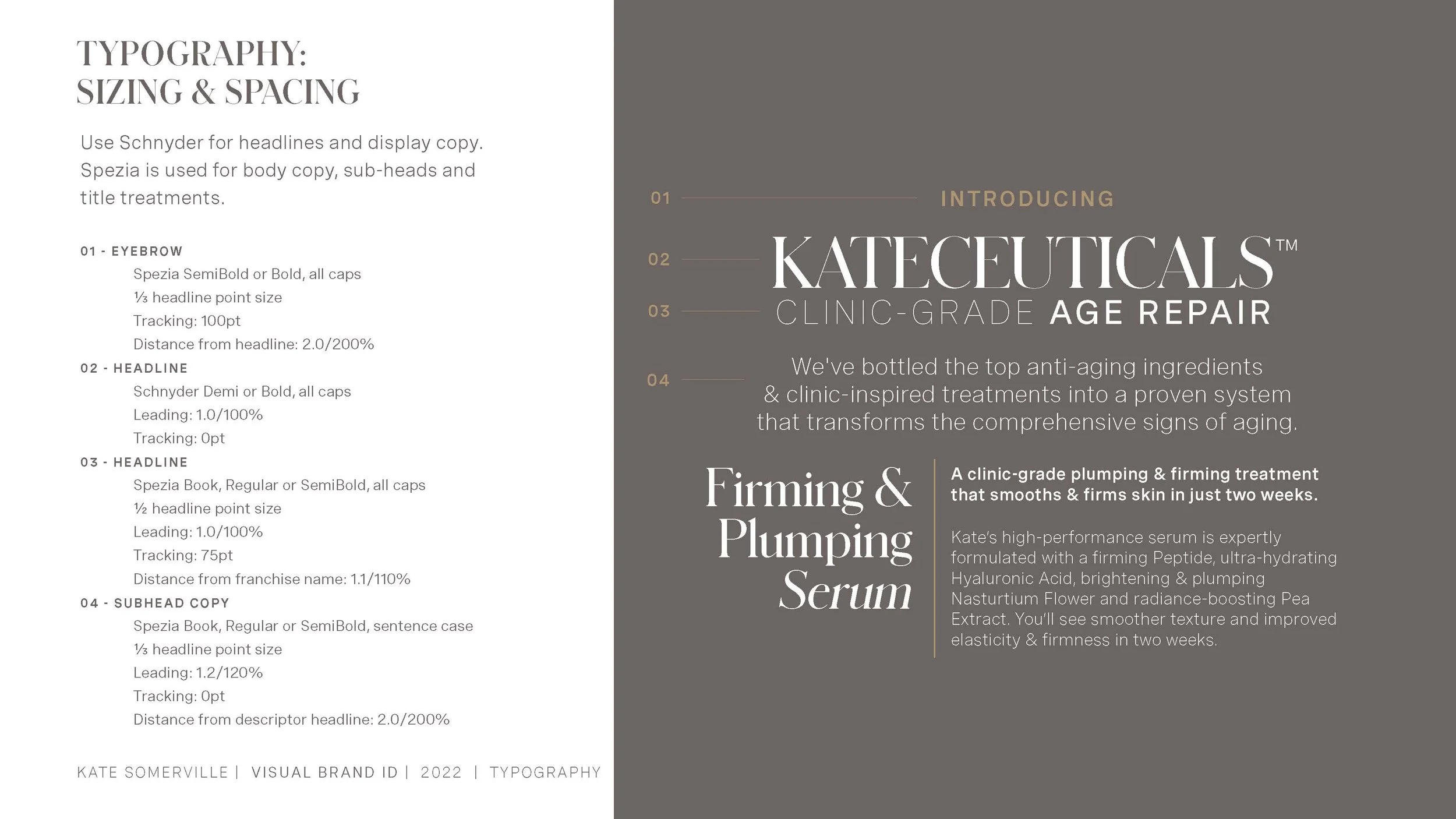 During my time at Kate Somerville, I had the opportunity to play a key role in reshaping the brand’s visual direction. As part of this project, I developed the Brand Visual Guide – a comprehensive document outlining the use of fonts, colors, photography, and other design elements. This guide serves as a blueprint to ensure consistency and cohesion across all brand communications and design deliverables.